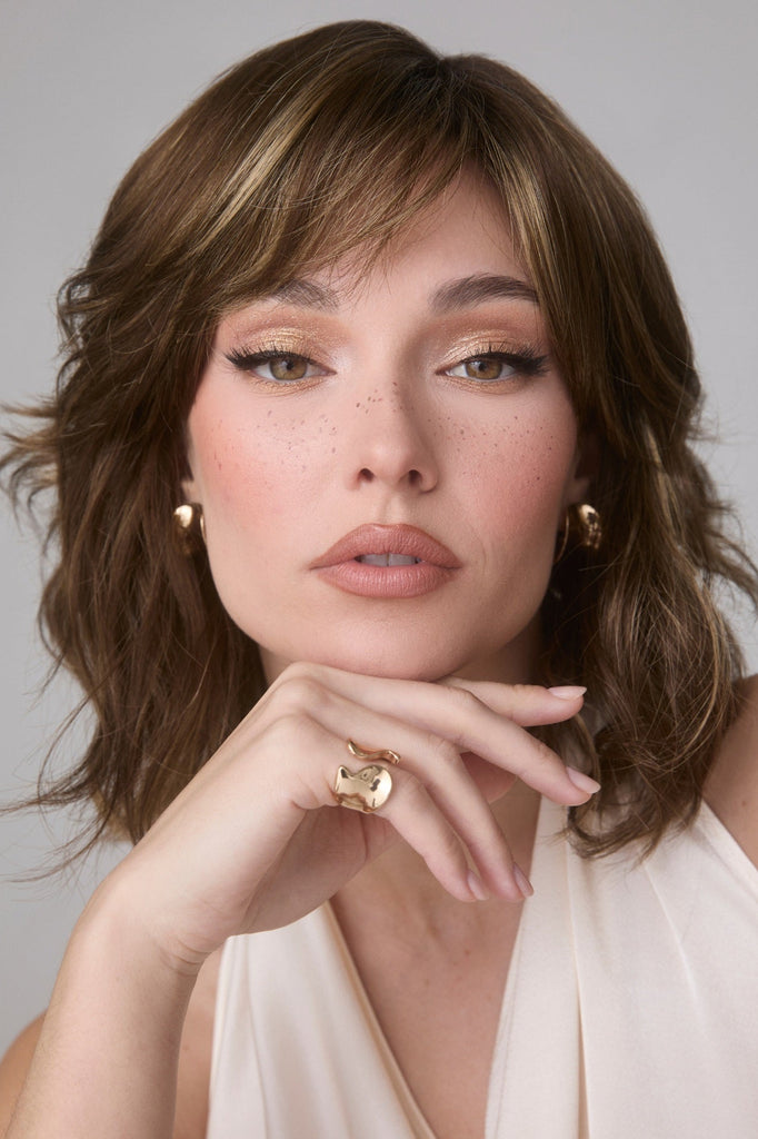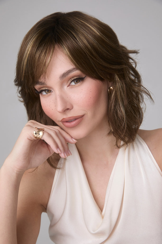 Braylen from our Amore Collection is a mid-length synthetic wig. This wavy ready-to-wear wig is a fun and playful wig with medium density. If you are looking for that beachy wavy curl pattern with fringe this is the wig for you. Our Braylen cap construction is Double Monofilament and lace front. The lace front is a hairline fusion technology with minimal lace front for a natural look. The Double Monofilament cap construction is combined with calibrated machine wefting along the sides and back. Braylen's cap includes polyurethane tape tabs along the front and adjustable tabs in the back neck area. The result is a comfortable fit with a natural look that is both fashionable and easy to wear.