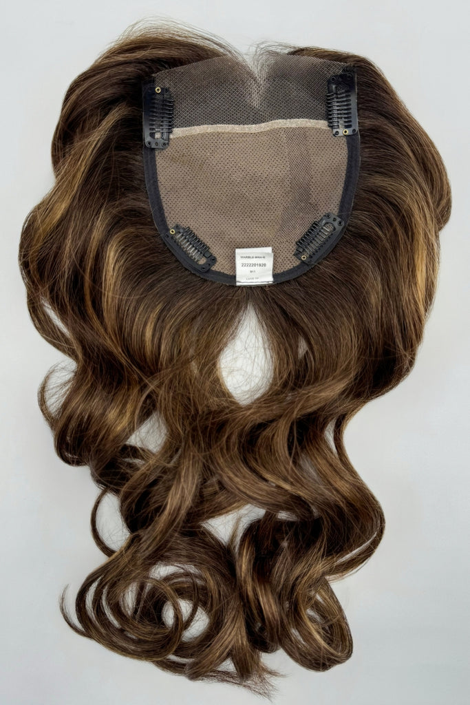 Luxe Top Piece from the Amore Collection is a synthetic mid-length hair piece. This soft curly hair piece is a gorgeous enhancement that increases volume to your everyday look. This topper can be won as a filler for extra volume or to highlight. It’s Monofilament base and lace front includes soft wire perimeter technology for a perfect fit. The Luxe TP will give you a light, breathable base and provides the ultimate versatility and comfort.