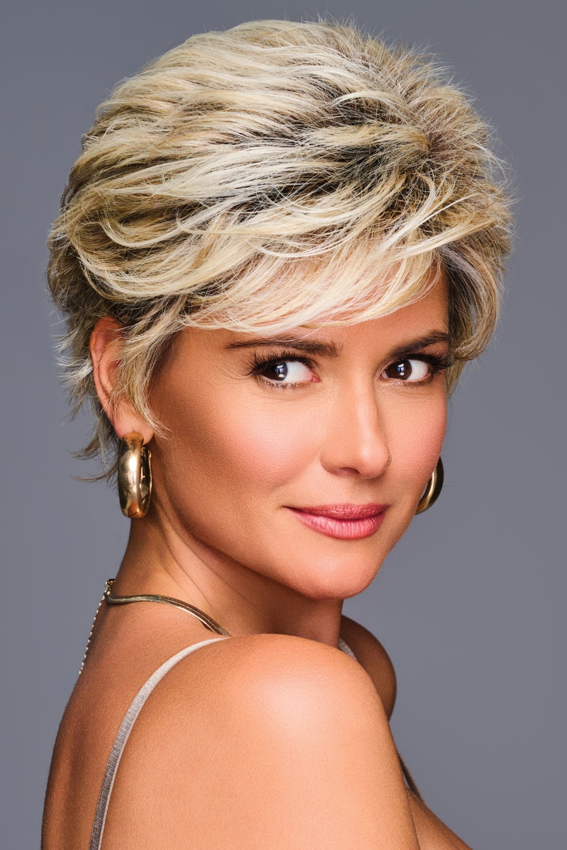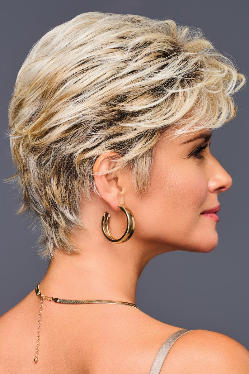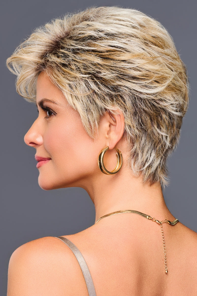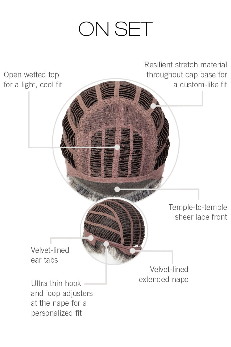 On Set is short, refined, and full of natural movement. This layered cut offers effortless sophistication. Shake, place, and go — it delivers a polished look in seconds. The extended lace front enhances the style with a clean, natural hairline for a seamless finish.