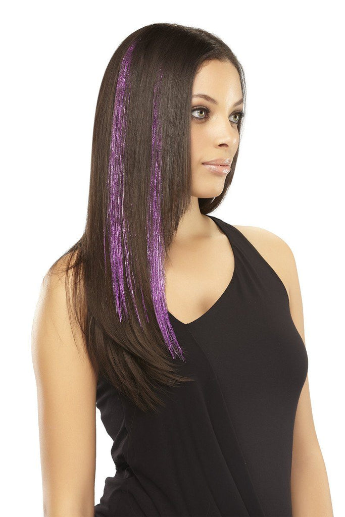 This 16" tinsel tress attaches fast with its pressure sensitive clip. Trim to match your hair length and take the stage!
