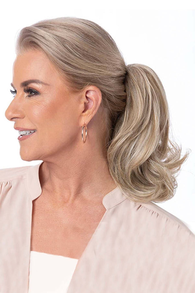 The Toni Pony Layered Flip is a 14.5" versatile layered ponytail, clip-on (4" Claw Clip) full ponytail with fabulous layers of flip and bounce... the "Fun Ponytail.” Reversible for a more voluminous, fuller/thicker texture and limitless styling options. Wear it high or low for a completely different hairstyle.