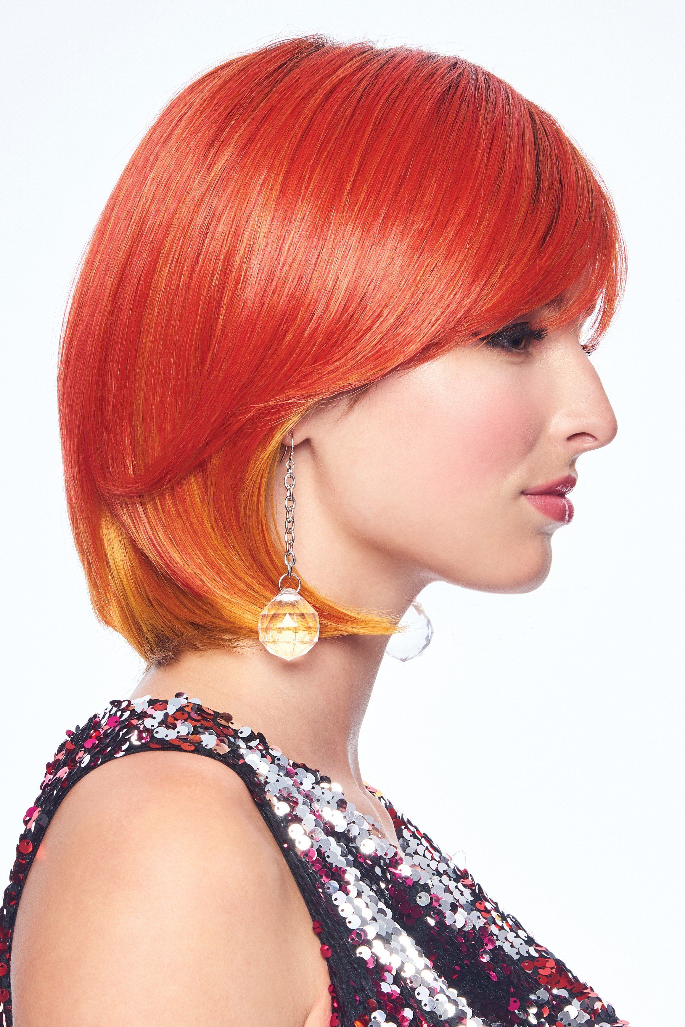 Embrace your fierceness in shades of flaming orange. This sassy silhouette