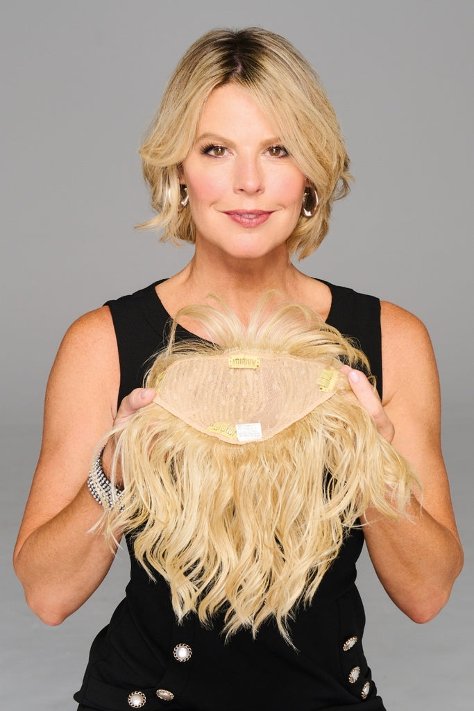 No matter the season, add some summertime beachy waves to your look in seconds with this clip-in topper. It’s lightweight, breathable and the perfect way to cover thinning hair or grown out roots between salon visits. Integrate with your own hair for the easiest updo ever.