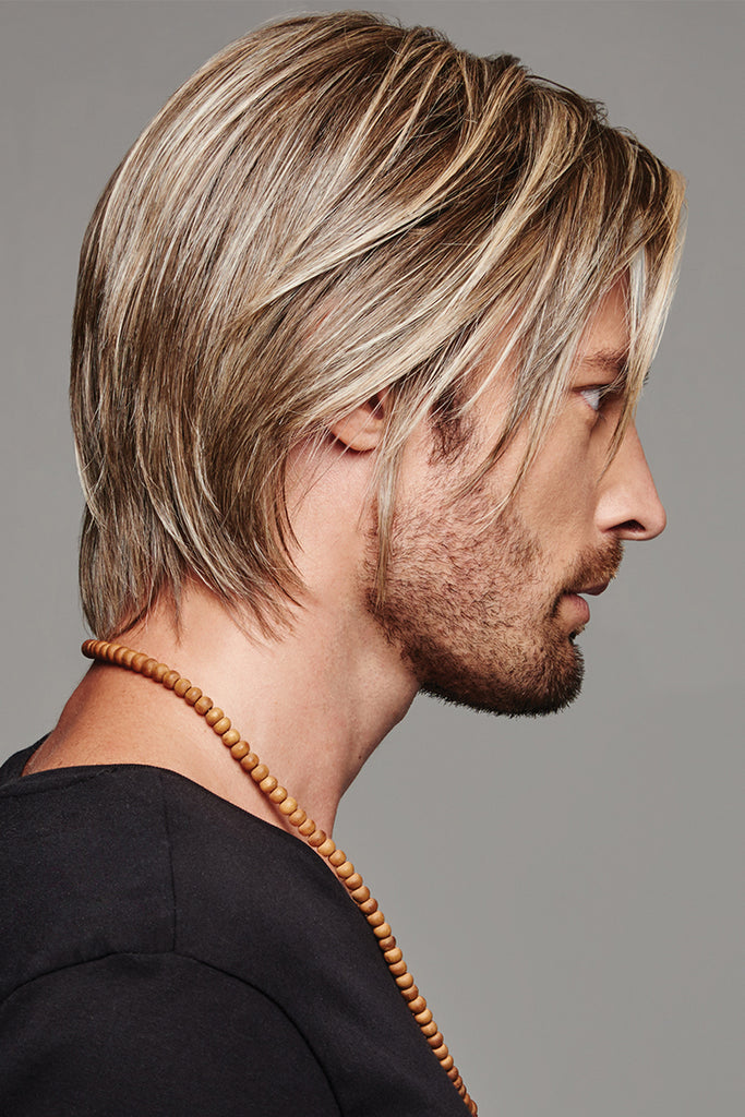 The DARING by HIM, do you dare to try length that speaks volumes. The lace front was made specifically for HIM to create the ultimate hairline. More length equals more options. Wear the hair slicked back or down and messy around the face. With this precise cut, no look is off limits. HIM by HAIRUWEAR was created for the stylish man who gets what he wants.