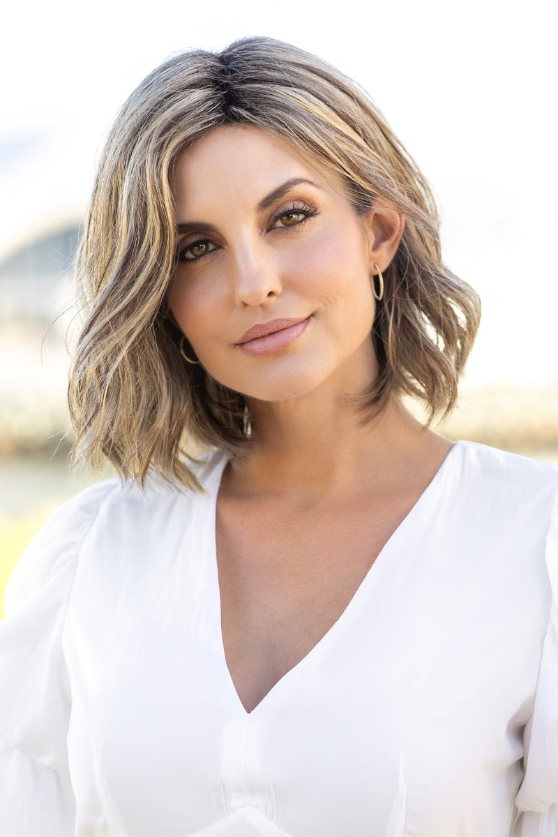 Experience the elegance of Charlotte's mid-length, wavy design with perfectly placed layers that create an effortless, organic movement sure to turn heads! The beautifully crafted monofilament part adds subtle volume, enhancing the natural appearance and beauty of this wig.