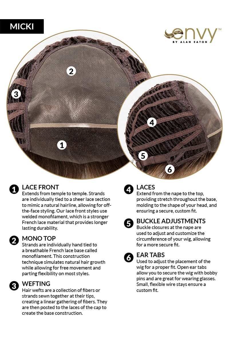 Lace Front Mono Top technology combines with soft layering to make Micki by Envy the ultimate natural, lightweight fashion statement. Comb her spunky razored edges back or off to the side to create your own unique style—the lace front hairline will hide your every move.