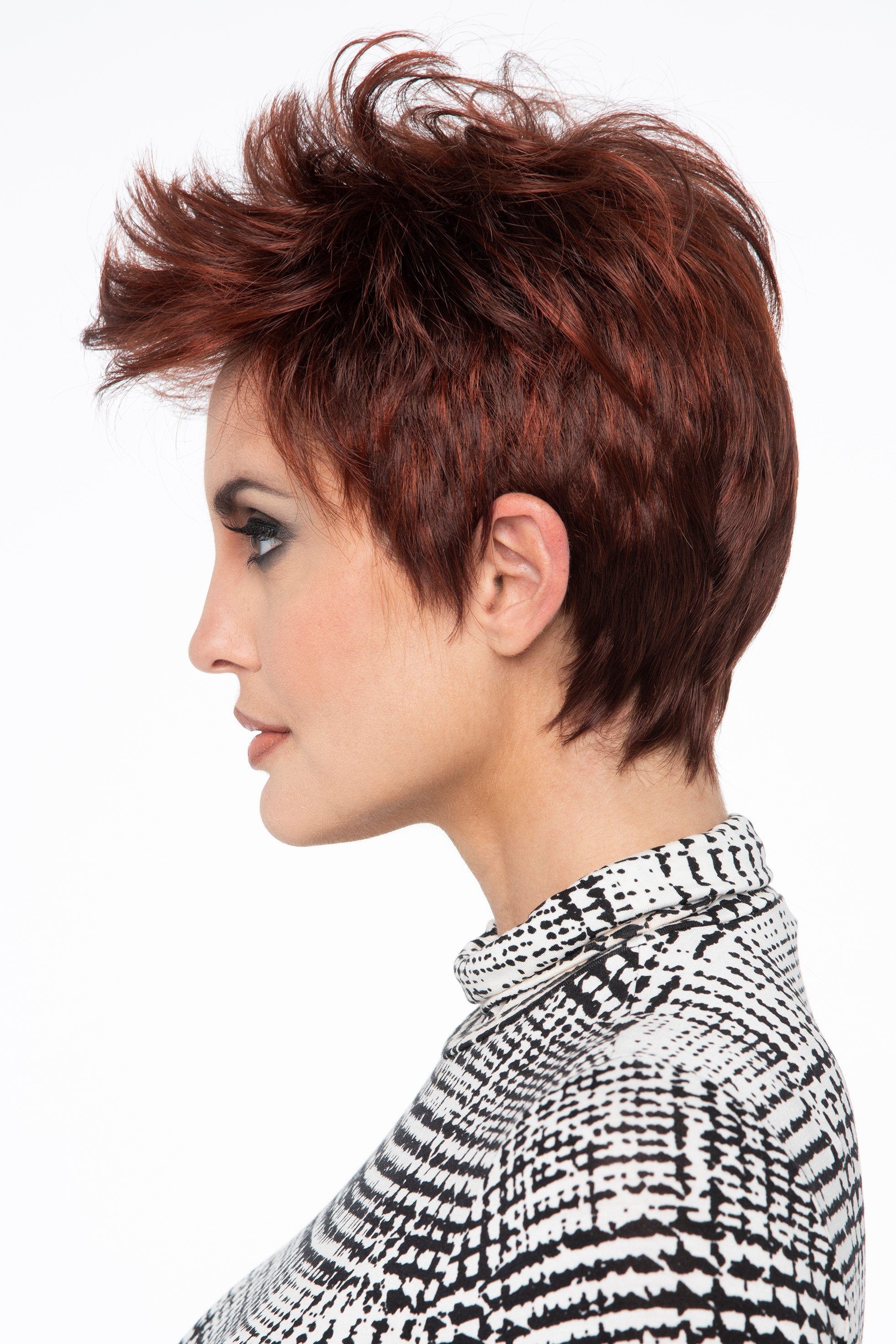 Raven is a unique, edgy and grunge style by Envy Wigs. More than just a style, she has attitude in spades, and you are most certainly up for the challenge. Your secrets are held as close as her stylishly cropped sides with a Lace Front construction that allows for a seamless hairline and no-show confidence.