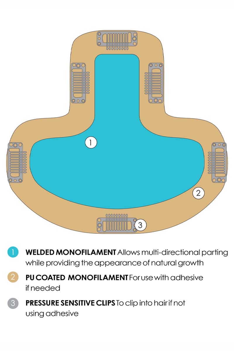 EasiPart T HD 12" is ideal for those experiencing beginning to mid/progressive hair loss, and want more coverage and volume in the crown area. This topper features more density, a wider base for more all-over coverage, and larger polyurethane perimeter with five strategically placed pressure sensitive clips that can be removed if Tape ‘N Go or adhesive is applied. Available in 12 and 18 inch lengths.
