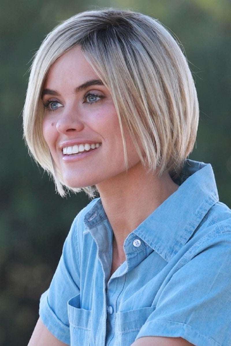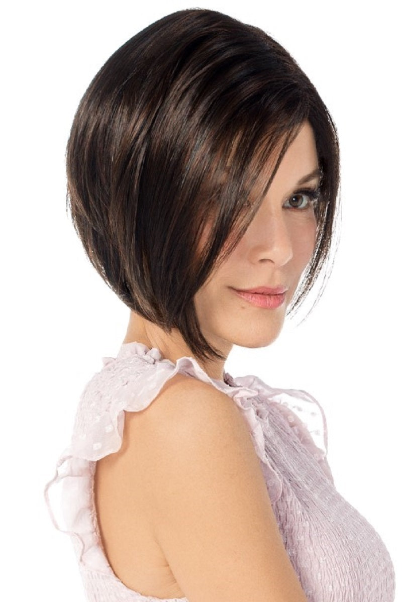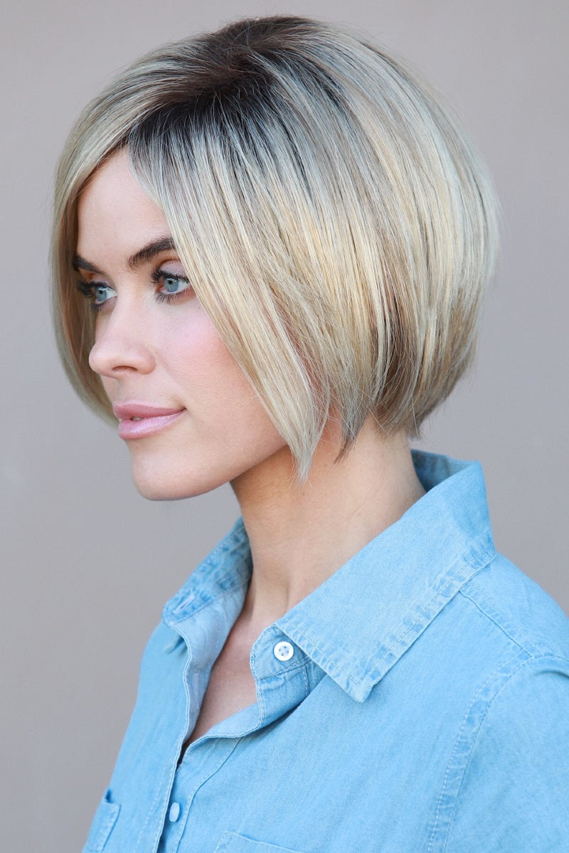 This short sleek modern bob hugs the jawline, the nape shape provides seamless coverage and allows it to move freely. This open cap design allows for a voluminous and airy construction.