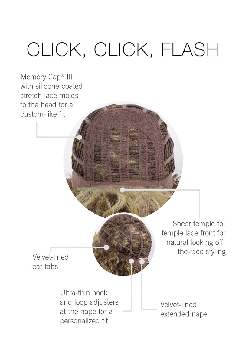 If you’ve ever dreamed of having a full curly mane, Click Click Flash from the Raquel Welch Signature Collection is for you! Wear the natural spiral texture tousled and scrunched for a look that’s loose, carefree and oh-so-photo-worthy.