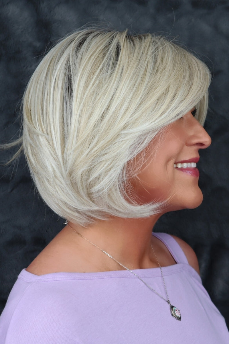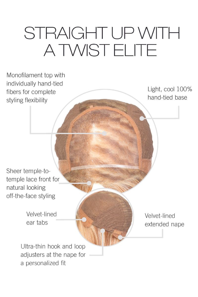 Elevate your look with Raquel Welch Wigs Straight Up with a Twist. This edgy wig features a straight lined chin length cut with a softly sculpted nape for natural movement and a textured look. Its versatile styling options give you a bold, chic look that can be achieved with ease. Made with a 100% hand-tied cap construction, a monofilament top, and an extended lace cap, this wig from the Signature Collection is the perfect addition to your hair arsenal.