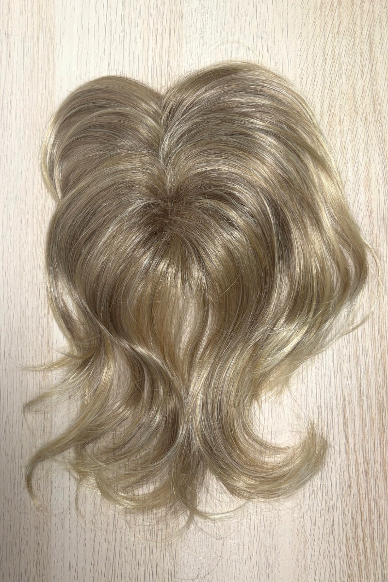 A top piece volumizer that can be used to hide graying roots, stack a different color or simply to blend in and make a fuller and more youthful hair style. With 12 inches of hair to play with, this is a fun and versatile hairpiece.