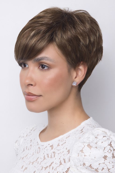 Amara from our Alexander Couture Collection is a short-length synthetic wig. This straight ready-to-wear wig is a pixie cut with a stylish fringe on the side. This style has texture and body that will give you an effortless look. Amara is machine made with adjustable tabs in the back nape area to allow a more comfortable fit. The result is a comfortable fit with a natural look that is both fashionable and easy to wear.