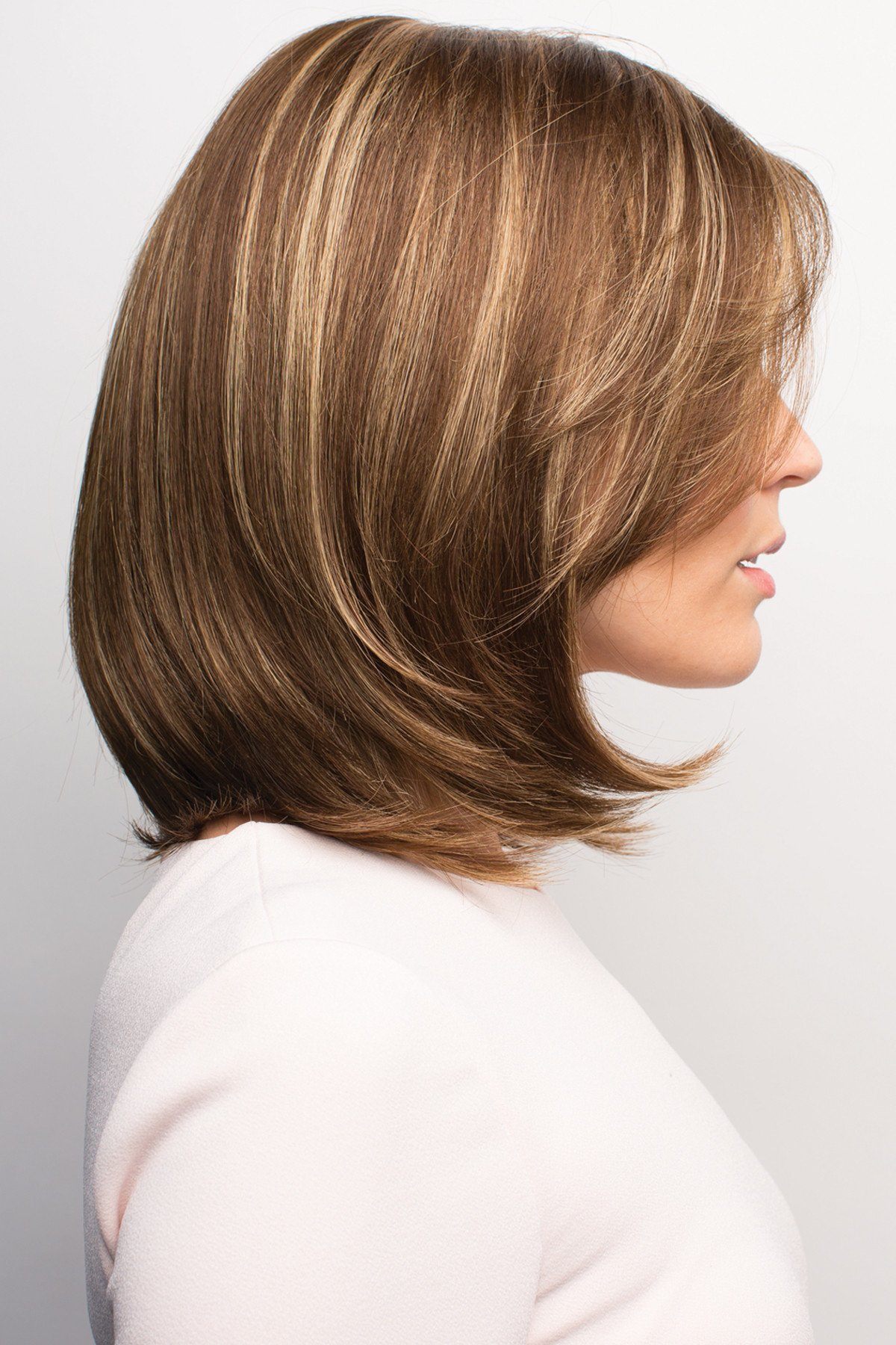 This straight ready-to-wear wig features a soft pageboy cut with chiseled ends and side swept-textured fringe. Its Double Monofilament cap construction is combined with calibrated machine wefting along the sides and back. The cap includes polyurethane tape tabs along the front and adjustable tabs in the back neck area, to allow for comfortable fit. The result is a comfortable fit with a natural look that is both fashionable and easy to wear.
