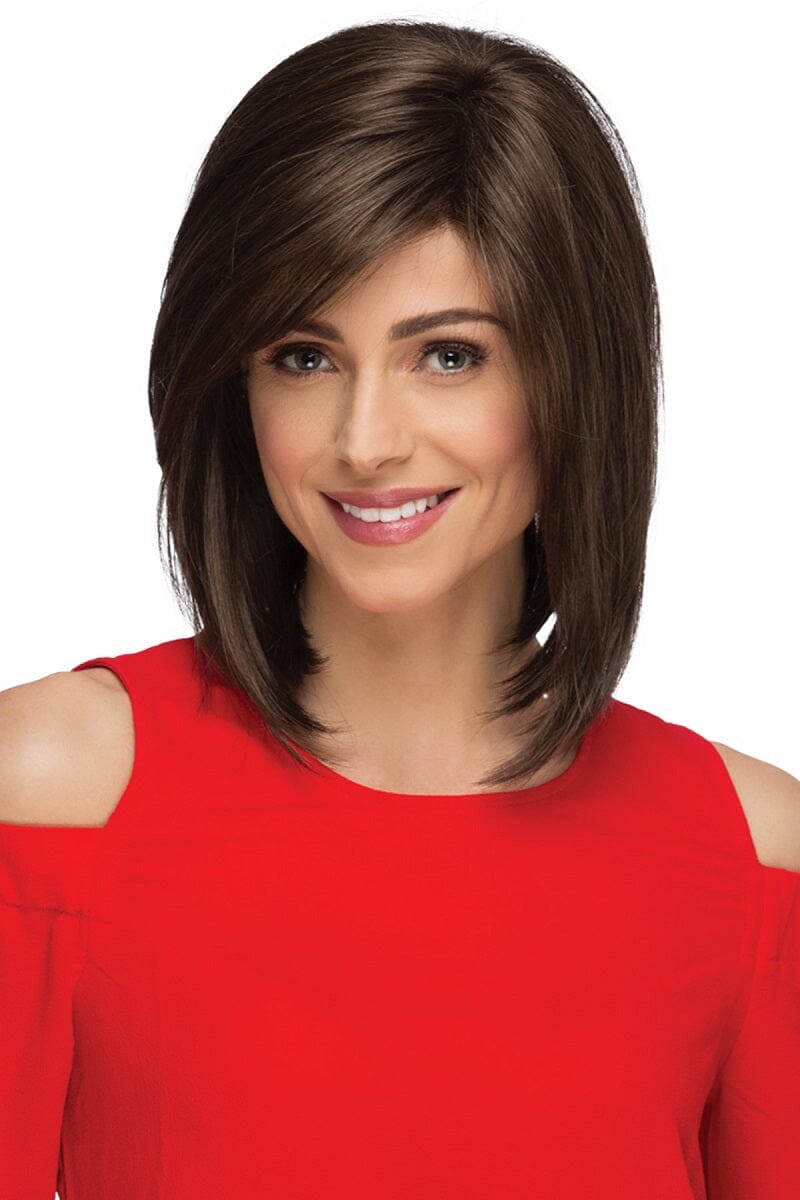 Sky's not a traditional lob styled wig. This look is both sexy and chic; the perfect amount of versatility all in one style. Her slightly angled layers and flowing side bangs make this shoulder length style simple and sleek for a perfect evening.