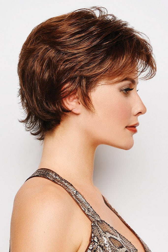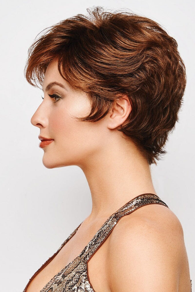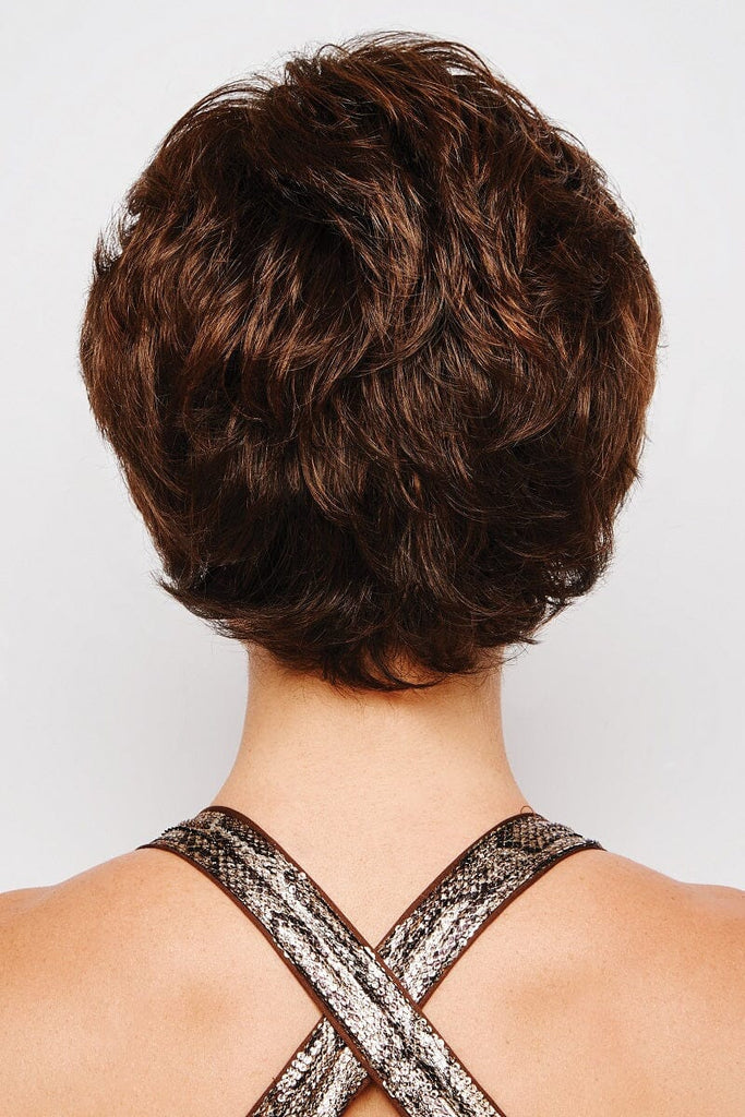 A fresh take on the classic fluff back silhouette, this short, barely waved cut includes a hand knotted top and sheer lace front for natural looking, off the face styling.