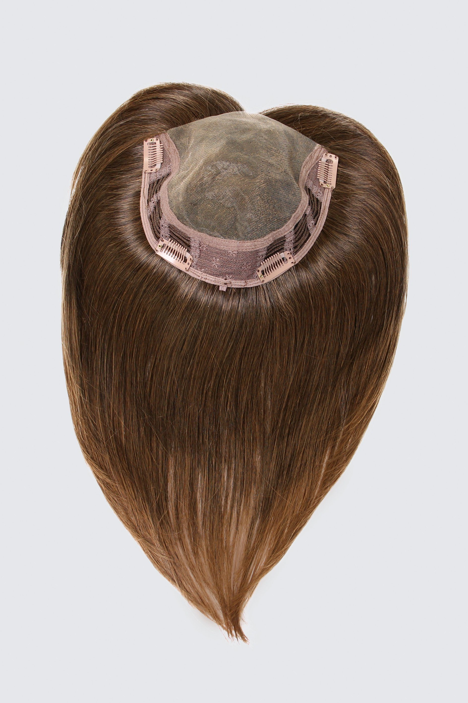 Effect by Ellen Wille is an artistically designed top piece that integrates flawlessly with mid to long length biological hair. The large base design provides full coverage and features a hand made monofilament top allowing you the freedom to choose where you part the hair! There are wefts along the sides and back of the design to offer the perfect amount of lightweight, natural density, ensuring that the hair is directed downwards for a seamless blend. The 4 clips to apply are lightweight and comfortable to ensure security while wearing. An impeccable temple to temple lace front offers a natural hairline with unlimited styling possibilities! The Futura premium synthetic fiber is heat resistant up to 300 degrees F and mimics the look, feel and movement of biological hair. The Hair Society Luxury Collection by Ellen Wille is 100% hand tied, monofilament, with a beautiful lace front. Ellen Wille has designed the ultimate top piece base construction for comfort and lightweight wear, providing an ideal solution for women experiencing minimal to advanced hair loss.