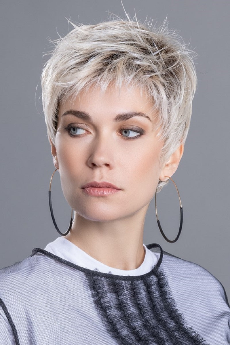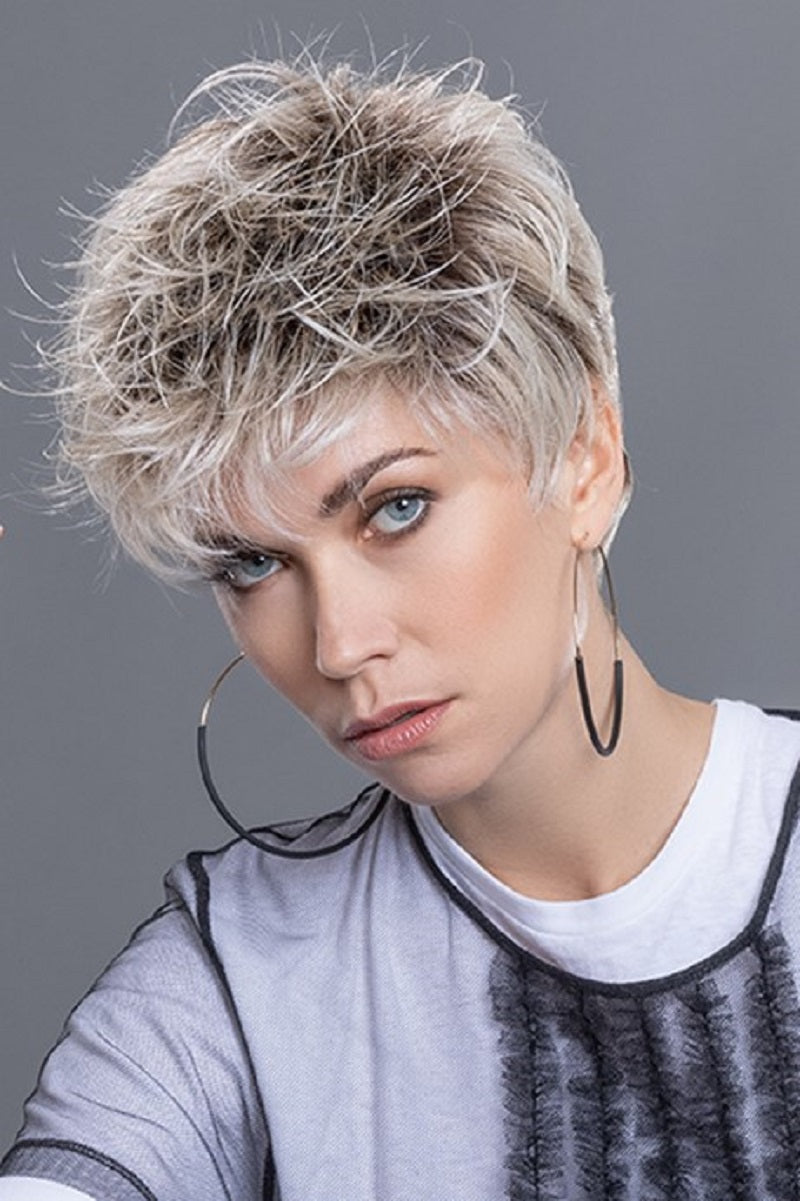 Bliss from the Ellen Wille Changes collection is a short stylish pixie with longer lengths at the top to allow for versatile styling. Textured layers at the top create some lift and can be styled forward or swept to the side. The extended lace front creates a natural looking hairline that extends from ear tab to ear tab while the mono crown creates a look of natural hair growth in the crown area and some natural volume.