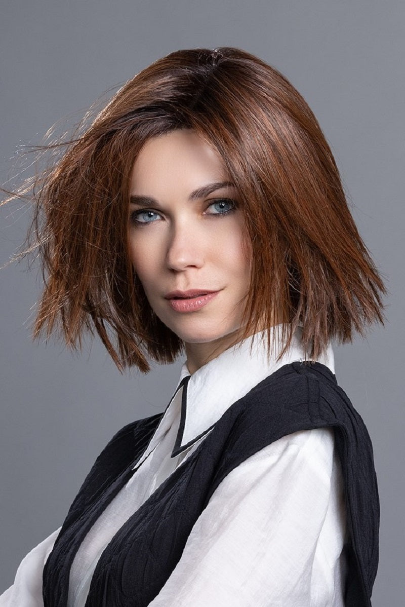 Lia II from Ellen Wille Changes collection is a sleek and straight fashionable bob. Hanging just below the jaw line, this blunt bob offers an edgy razor finish. Lia is made with Heat Friendly synthetic fiber so you can style your way. The newly added Extended Lace Front creates a natural looking front hairline and transitions into a mono part that gives the appearance of natural hair growth. This sleek bob is sure to impress and become a crowd favorite.