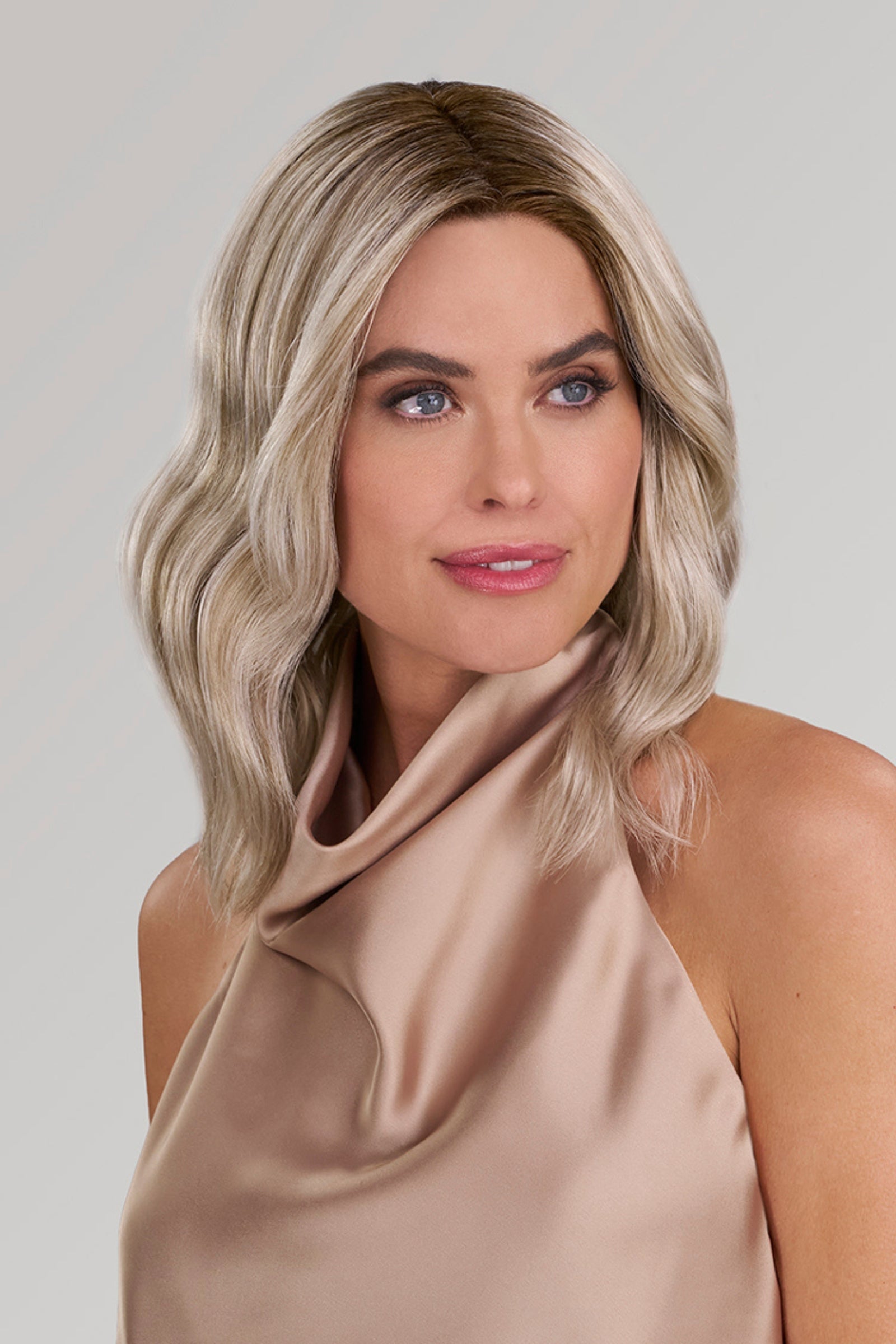 The Jon Renau Kaylee has elegant loose waves that seem too natural to be a wig. This style's lace front, hand tied design helps with realistic movements.