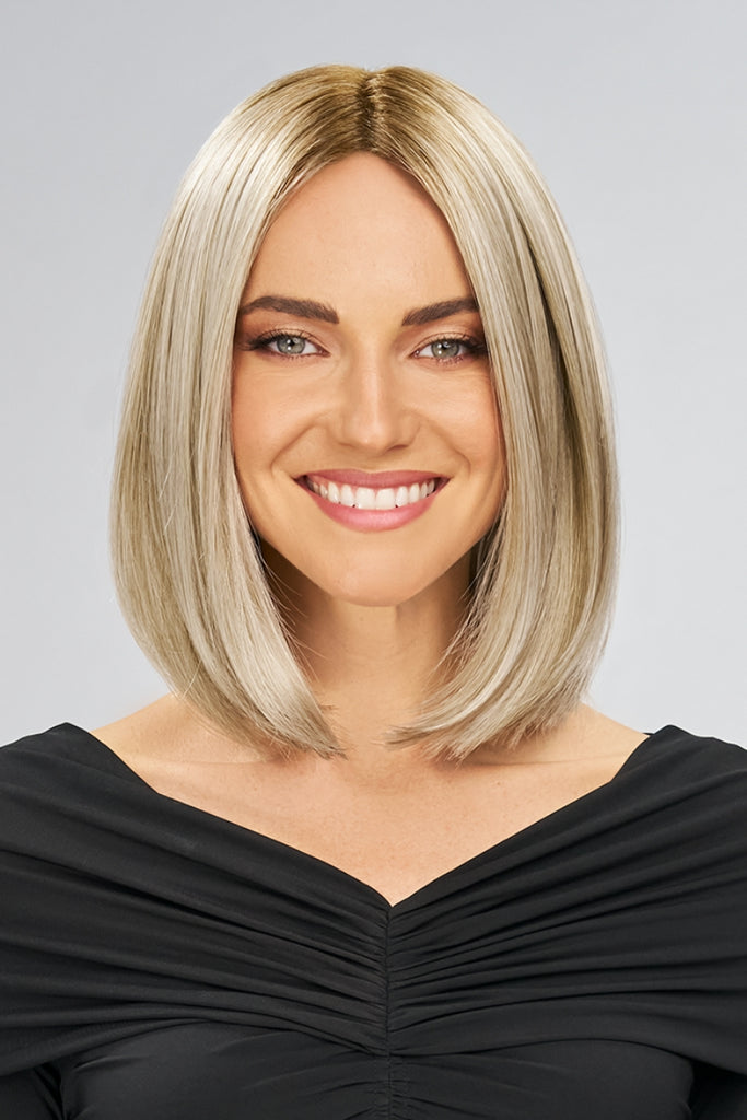 Introducing Clementine, a sleek and modern bob with a classic twist. This shoulder-length style features edgy straight cut ends, adding a contemporary touch to the timeless look. Expertly crafted with a blunt cut, its clean and straight line at the ends offers a sharp and modern aesthetic. The well-balanced and flattering silhouette of Clementine exudes confidence with every wear. Its SmartLace lace front and monofilament top create a natural front hairline and allow for multidirectional parting, providing customizable style. The long side layers offer incredible movement and endless styling possibilities, making a statement wherever you go.