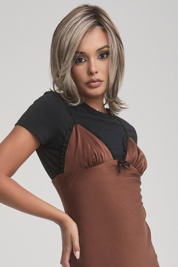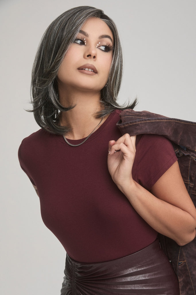 Mika from the Rene of Paris Hi-Fashion Collection is a medium-length synthetic wig. This ready to wear is a timeless style. Mika is shoulder length styles that can me arranged in many ways. The face framing layers and side-swept fringe provides stylish modern versatility. Mika is an extended lace front and partial monofilament with extended nape tabs and pull adjusters. The result is comfortable and modern fit with a natural look in fashion and easy to wear.