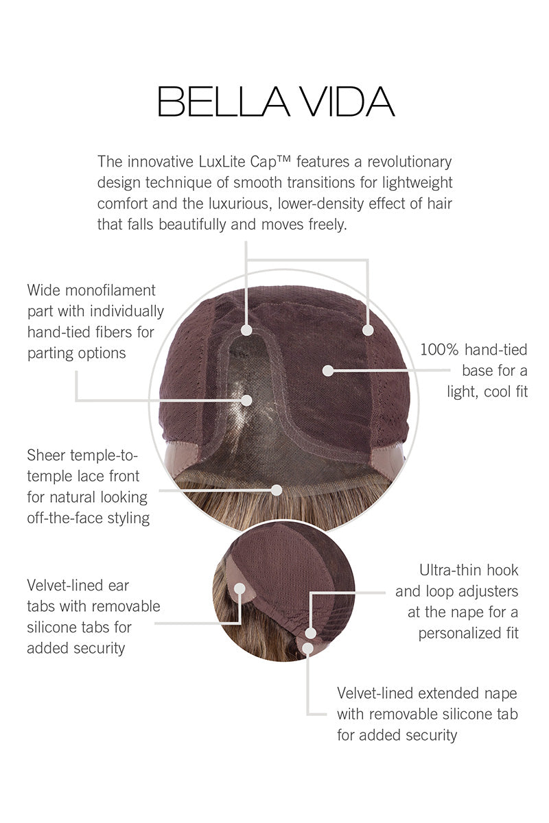 Life is beautiful in this stunning waved style. Bella Vida is an all-one-length lob of soft tumbled waves with subtle layers at the sides and lightweight construction. Wear amped up or loosely tousled.