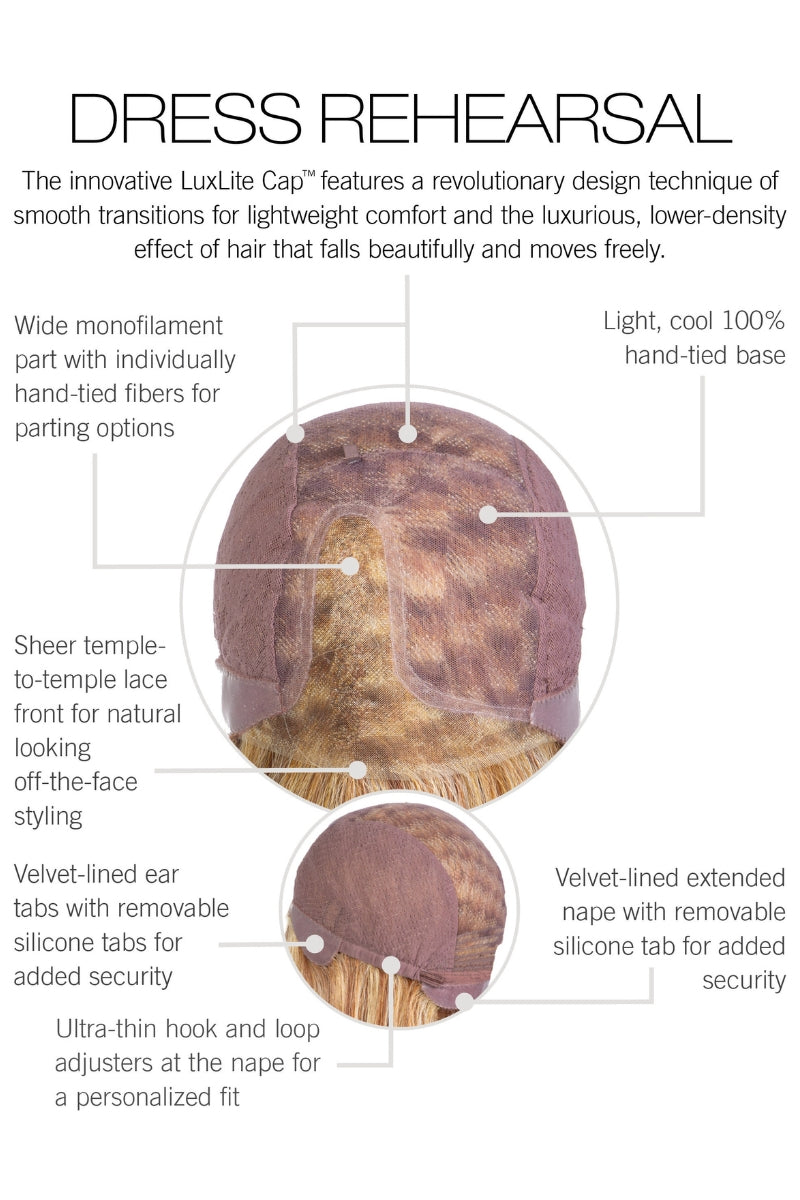Get ready to strut your stuff with the Raquel Welch's - Dress Rehearsal! This lightweight and heat friendly synthetic beauty will give you a long feathered cut with face-framing layers, natural volume, and gorgeous movement. Plus, the extended lace front and 100% hand-tied construction add a flair of glam to this soft and playful style. Don't miss the monofilament part, making it look even more natural. It's the perfect wig for those who don't take themselves too seriously!