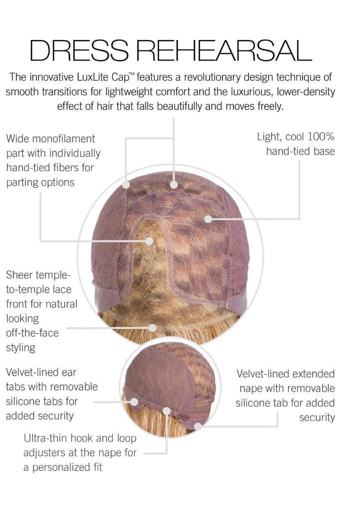 The LuxLite Cap: Features seamless transitions made with advanced, lightweight materials. This innovative design provides the comfort of a lower-density wig while achieving remarkable fullness. The LuxLite Cap is hand-tied and includes a wide monofilament part along with a temple-to-temple sheer lace front. It is crafted with a petite to average circumference and utilizes unique stretch fabrics to ensure a comfortable fit for most head sizes.