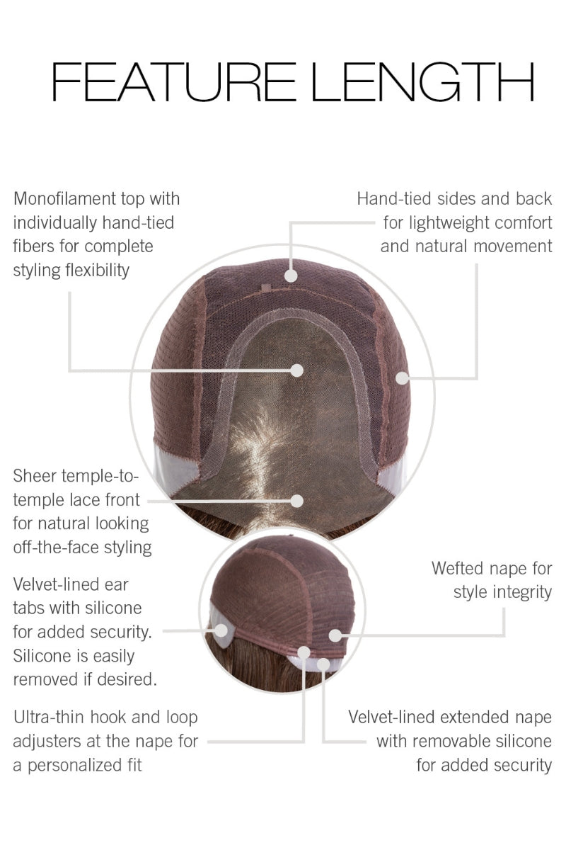 Feature Length is a show-stopping, timeless wig that effortlessly commands the room. With soft, flowing layers that fall to mid-back, this long-length style radiates modern sophistication. Designed with the LuxLite Cap II, it ensures a comfortable, natural fit, while the low-density strands deliver a lightweight, realistic look. The minimalist yet flattering design is perfect for those seeking a simple, elegant style that exudes confidence and grace.