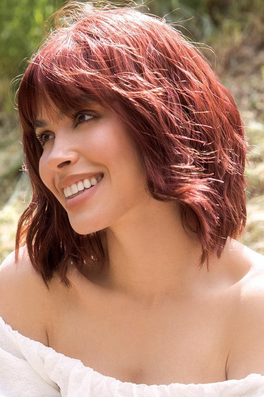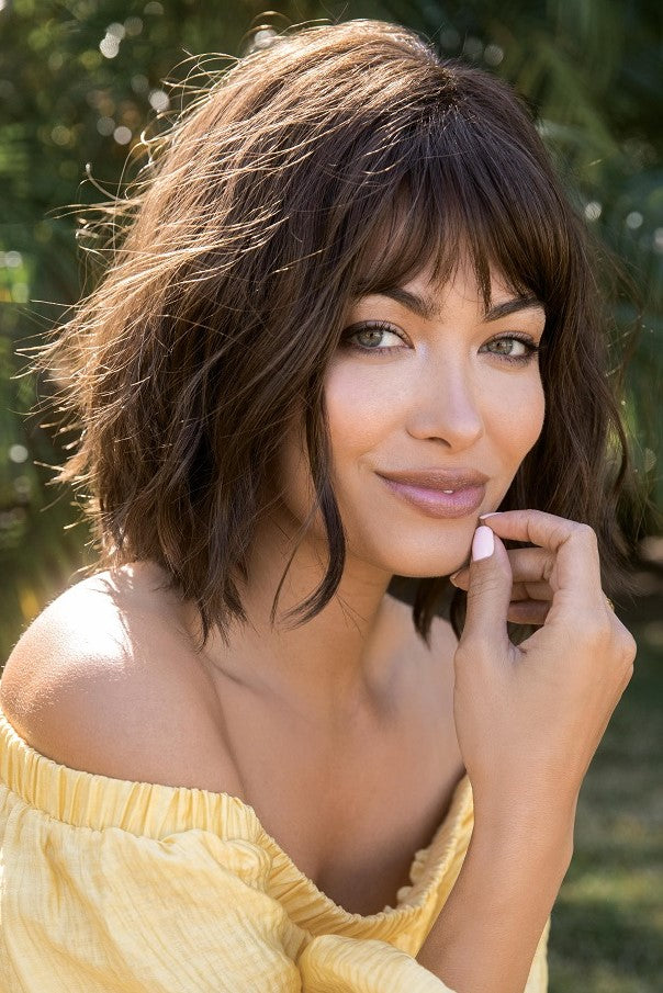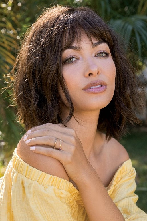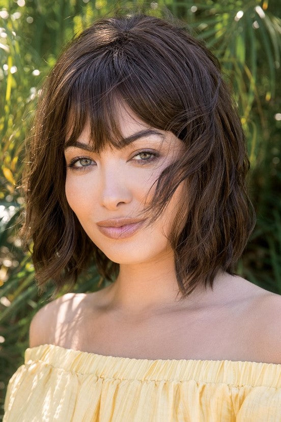 Liana from The Orchid Collection is a mid-length synthetic wig. This wavy ready-to-wear wig is a stunning bob with bangs and soft, shattered waves. Liana is a salon-inspired style with a sleek full fringe both bold and beautiful. This style is effortless and versatile. Liana is machine made with adjustable tabs in the back-nape area to allow a more comfortable fit. The result is a comfortable fit with a natural look that is both fashionable and easy to wear.