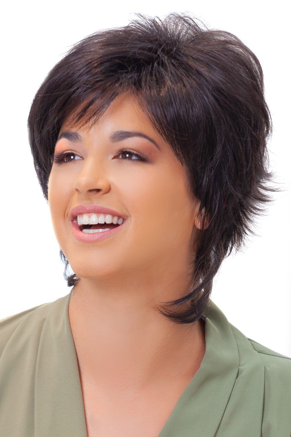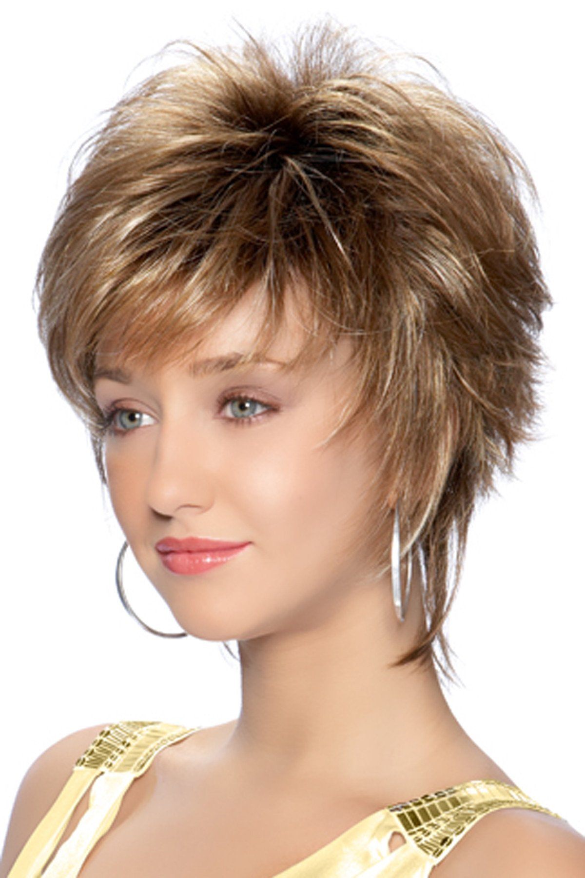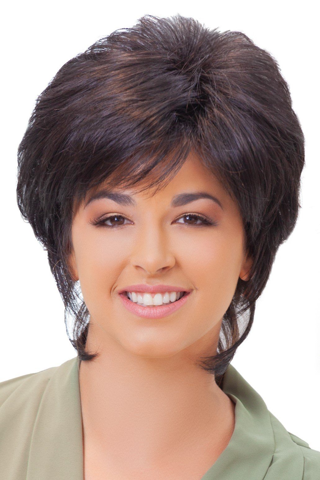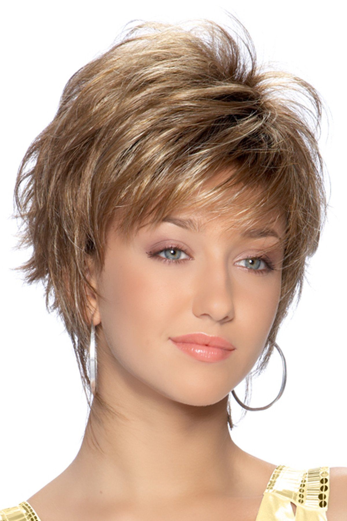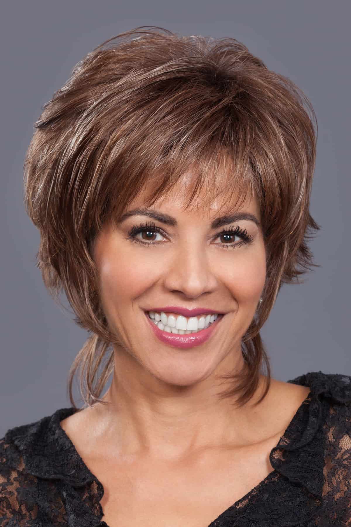 A new look that can take feathery layers and bring it to a fashionable and professional style wig, short and simple.