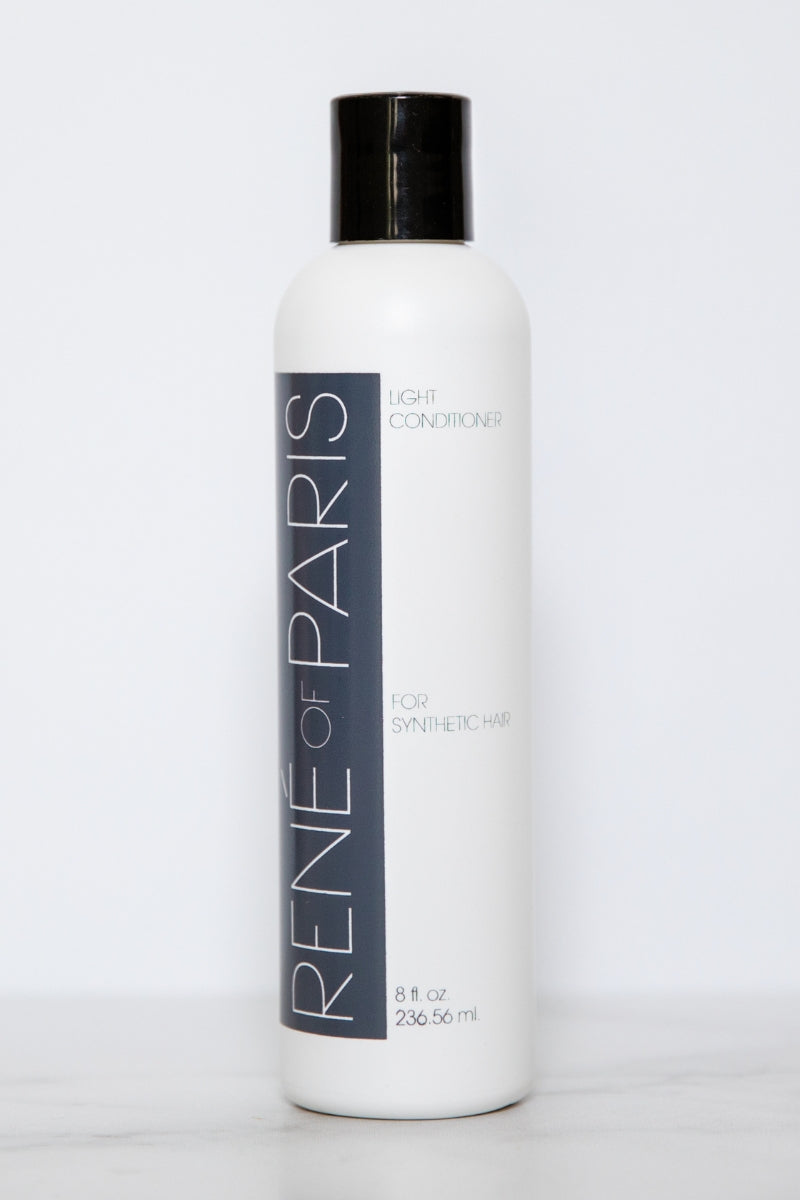 Light Conditioner by Rene of Paris for synthetic wigs revives dull fibers, leaving it softer, shinier, and easier to manage.