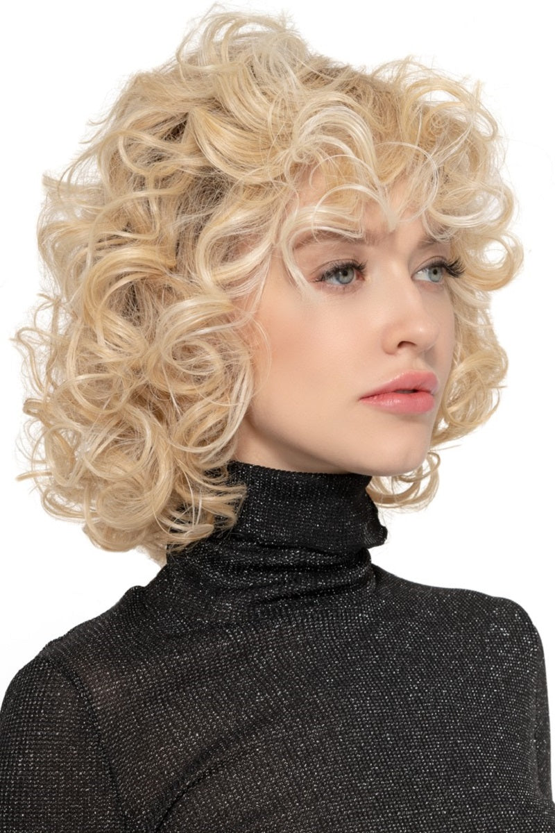 Cheers by TressAllure is a gorgeous mid-long bob with a soft wave front and light voluptuous bouncy “S” curls that fall gently below the collar in a full bob back. This wig is for anyone looking for modern light curls, length and volume without any of the weight or bulk. It’s incredibly lightweight, easy to wear, and has a hand-knotted, ultra-sheer monofilament top and lace front for an undetectable hair line and can be parted anywhere.  It can be worn with full curls or with light bouncy waves that boasts lots of natural movement. Cheers features our exclusive proprietary technologies including Sheer Comfort Mono Top Lace Front cap to keep you cool and comfortable and our soft, light, and natural exclusive synthetic Style-Able Effortless™ fiber that was developed to match the same thickness and weight as fine human hair. Available TressDimensional® colors come in warm brunettes, cool blondes, radiant reds, and gorgeous greys.