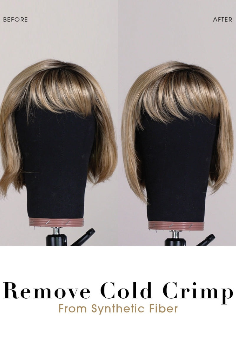 Something to keep in mind is that heat styling your heat friendly wig will take longer than styling normal bio hair. When curling the hair, it is recommended to hold the curl in place until the fiber cools. If you let it go right away, the curl will cool in a flat position.