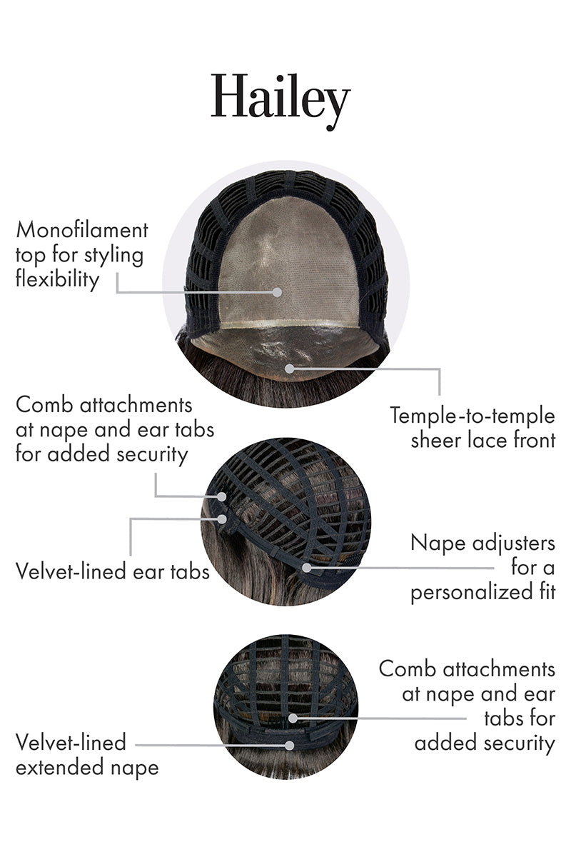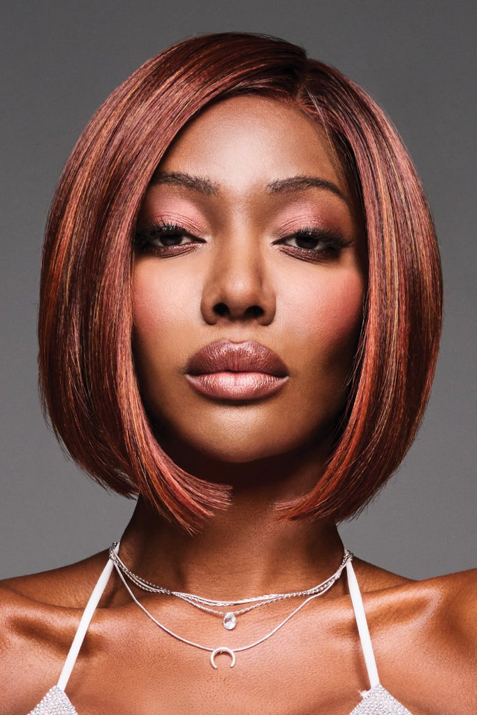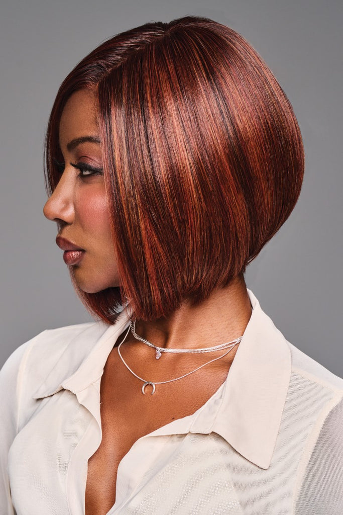The perfect combination of modern and timeless, HAILEY is sure to become your signature style. She is crafted with Tru2Life synthetic hair fibers for a high-density, bold angled cut. With this beautiful geometric bob and rounded stacked back, you'll be sure to turn heads!