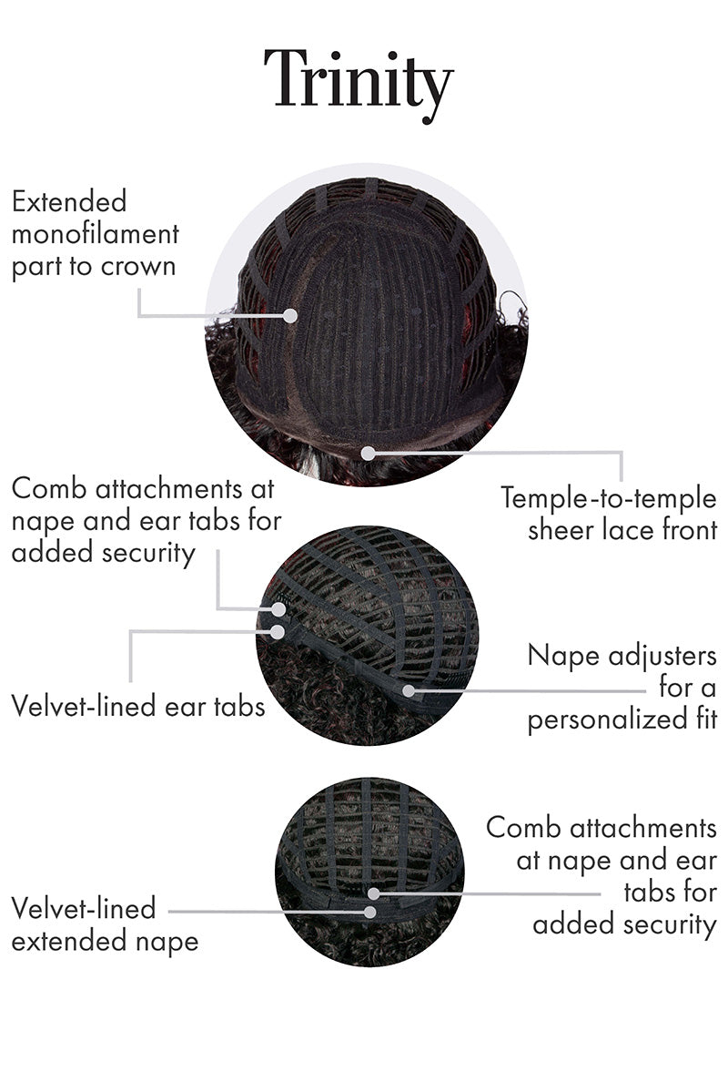 Get ready to get your groove on with TRINITY. This voluminous crown of coiled curls has an extreme, off-center parting to let you express your individuality with pride. The full rounded shape plays a starring role for evening looks or anytime you crave statement-making style.