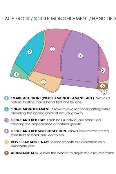 Cap Design: Lace Front, Monofilament Top, 100% Hand Tied