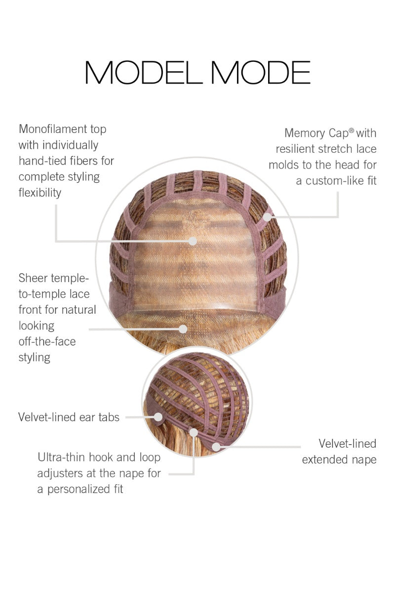 Glam glam glam! Model Mode by Raquel Welch is a super long style makes your every entrance a fashion show runway strut. Lush barrel curls are all directed away from the face. Light layering at the back adds movement and lift. A full monofilament top lets you part as you prefer.