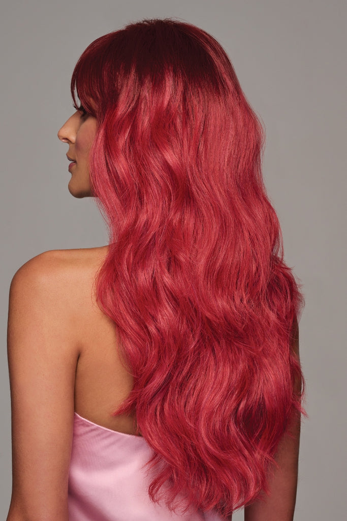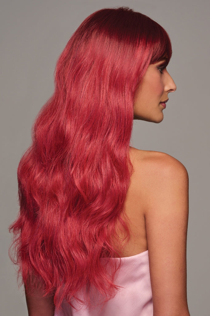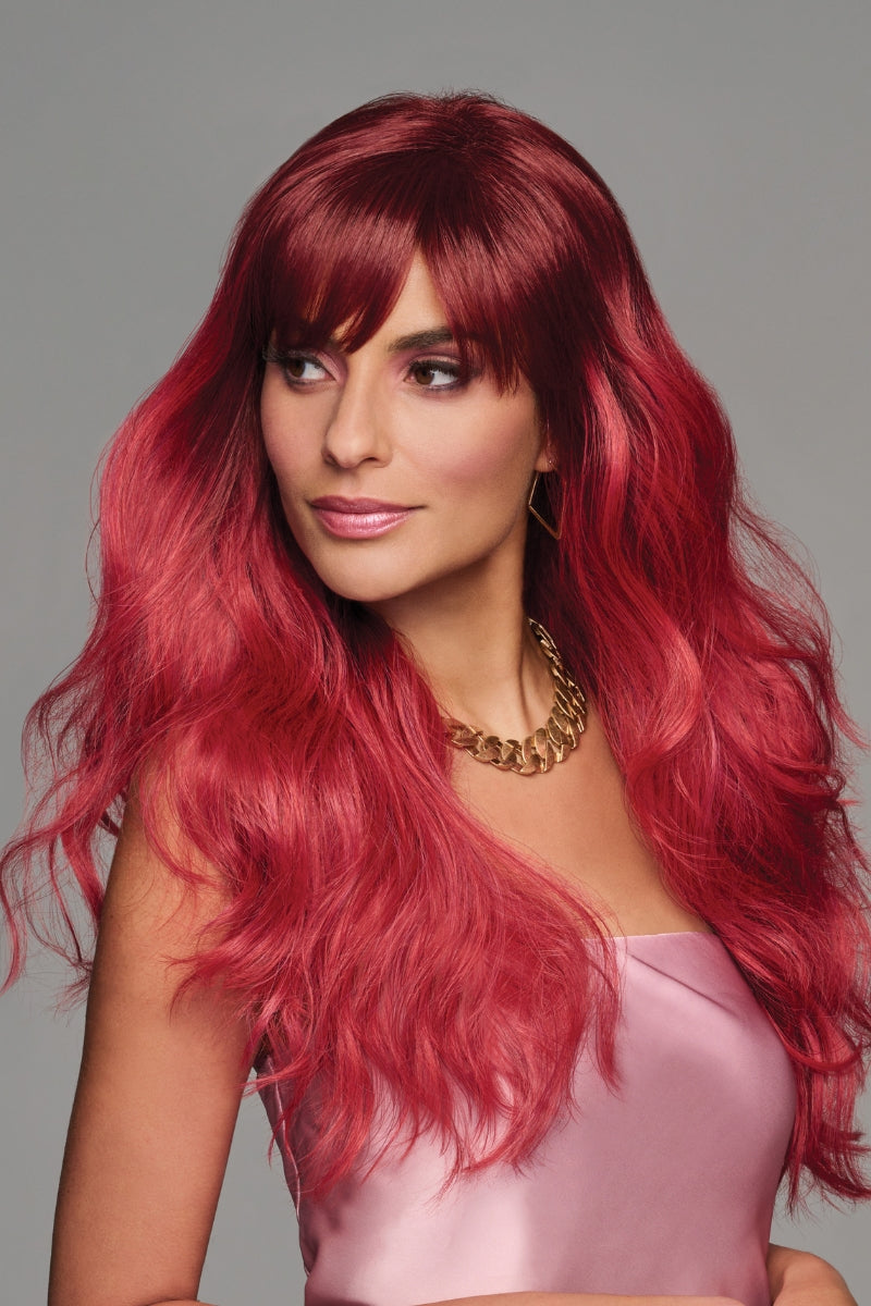Experience bold, red waves with That's My Jam by Hairdo! This long style features a versatile soft fringe that can be styled forward or to the side. The heat-friendly Tru2Life synthetic hair allows for easy customization between soft waves, bouncy curls, or sleek and straight. Get ready to jam out in style!