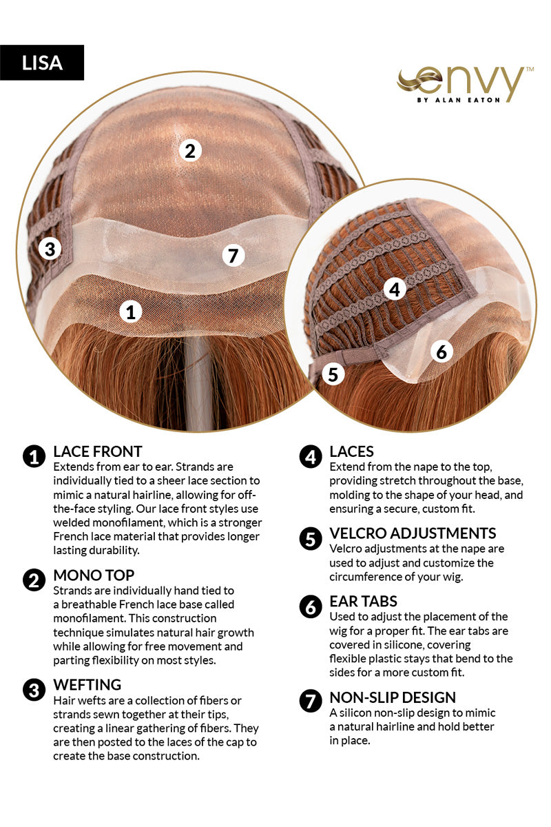 Envy Lisa's lush Lob has it all! The versatile just-past-the-shoulder cut can be worn as a casual low pony, blow-dried, or curled—thanks to EnvyHair, the exclusive human/synthetic hair blend that looks, feels, moves, and styles just like the real thing. And with Envy's Ear-to-Ear lace front providing the most natural looking hairline available, you might forget it’s not the real thing