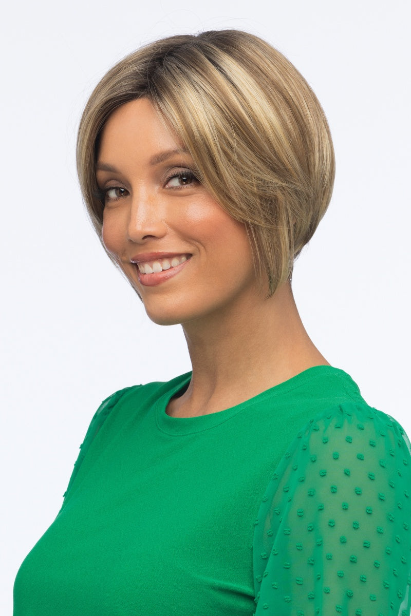 Upgrade your look with the Estetica Wigs Maxx. This short length wig features a sleek bob, shaped back, and angled layers for a charming, soft and dashing appearance. With a monofilament top and lace front, it provides a natural and comfortable fit. Perfect for a confident and sophisticated style.