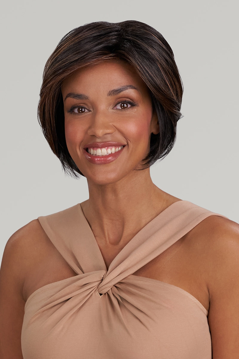 Let the sparks fly with Ignite! The angled layers of this HD wig can be flipped out with a flat iron for a sassy shag or a super sleek bob. This large cap wig features a SmartLace cap to create a beautiful, natural hairline.