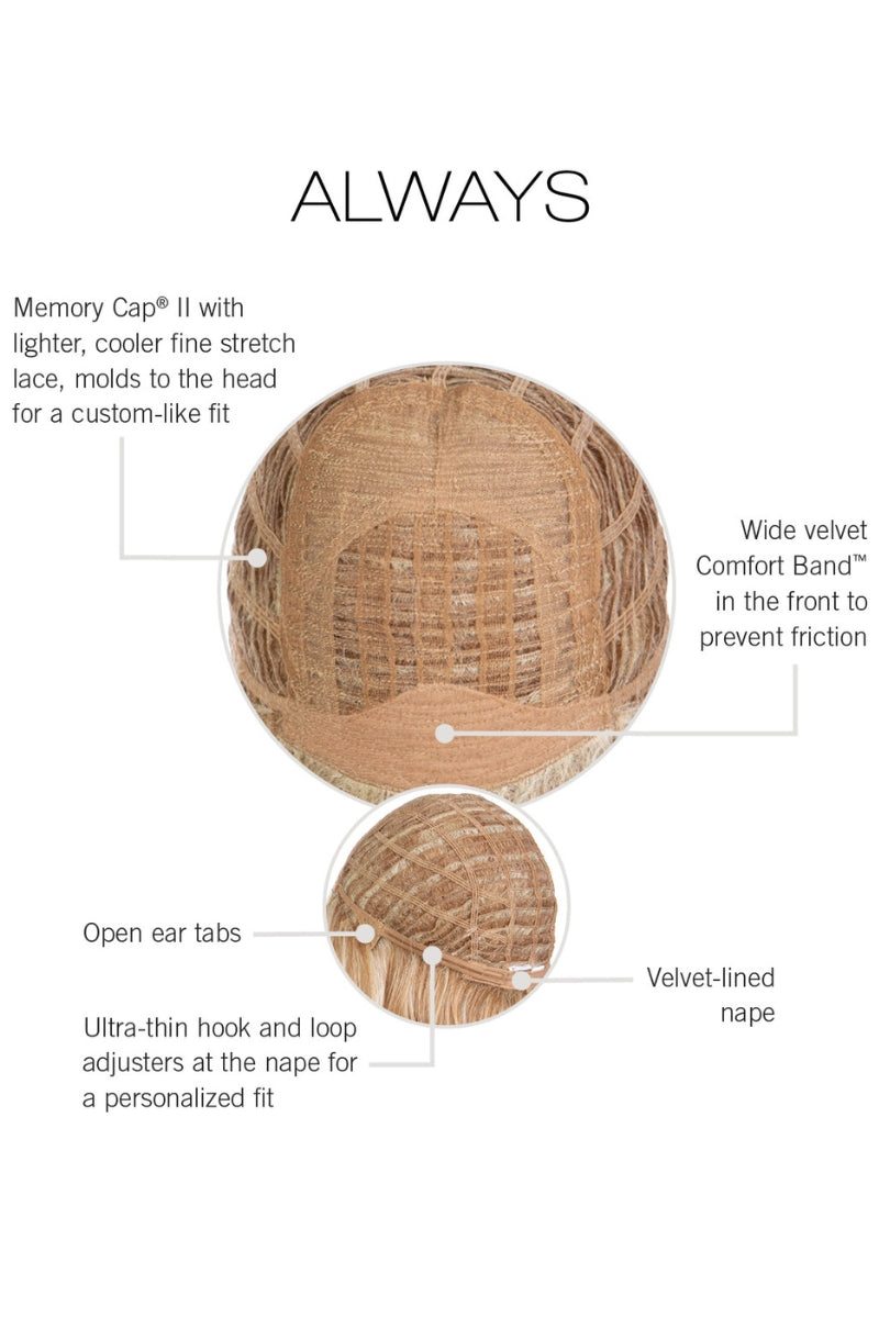 Memory Cap II: Wefted cap with lighter, cooler fine stretch lace that molds to the head for a custom-like fit.