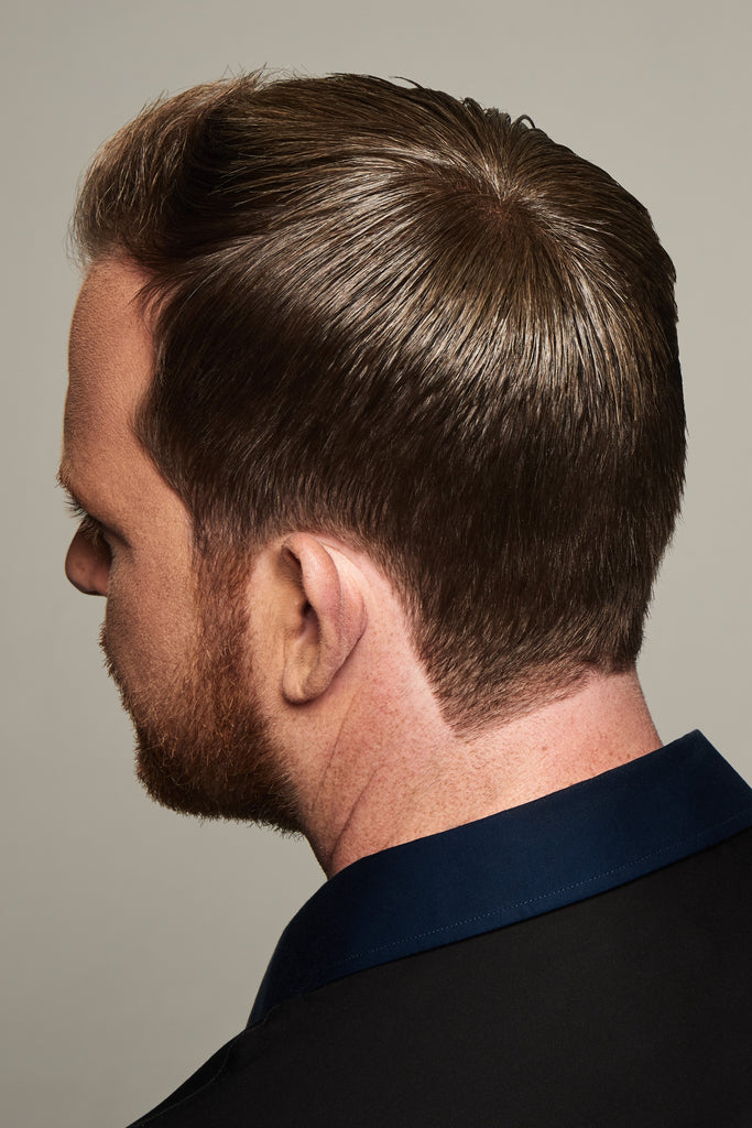 The narrow, hand-tied base of IN FULL EFFECT is the perfect men’s accessory to help fill in or conceal areas of sparseness at the top of the head. Five pressure sensitive clips allow for placement anywhere a little fill or fullness is desired. This versatile piece is a Hollywood “trick of the trade” and can be worn as it is with longer hair lengths or trimmed down to blend seamlessly into shorter styles as well. The monofilament construction of IN FULL EFFECT allows for brushing and combing in any direction.