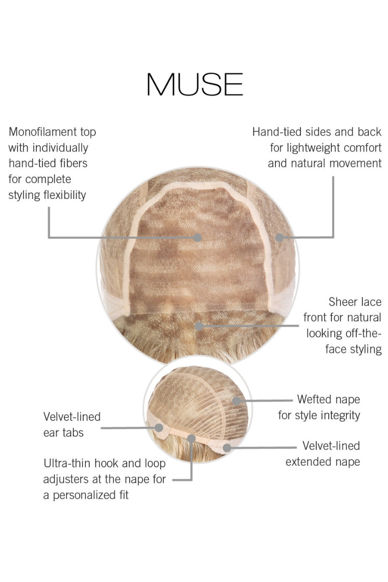 This classic chin-length page wig combines the natural looking hairline of a Sheer Indulgence lace front monofilament top for optional off-the-face styling with the cool, light comfort of a partially hand-knotted base.
