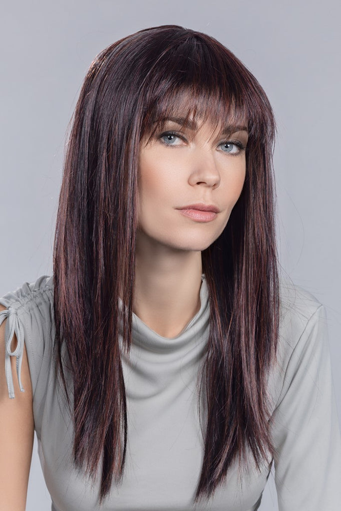 Trendy.. youthful, and elegant. Now you can have it all! Full, blunt-cut bangs have been re-textured for a more “feathered” look that both modernizes, and adds youth while framing the face in a subtle, and elegant way. Futura fiber enables heat resistance up to 325F degrees, adding even more styling versatility!