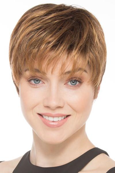 Stop Hi Tec by Ellen Wille is a lightweight short style with a tapered neckline; it weighs less than two ounces! This wig features a monofilament crown, and is ideal for a petite to average head size. The density of the ready-to-wear synthetic hair looks more like natural hair and requires little to no customization or thinning. Stop Hi Tec is part of the Ellen Wille Hair Power collection.