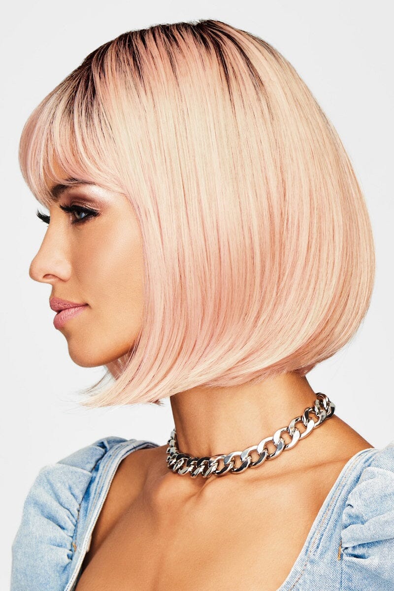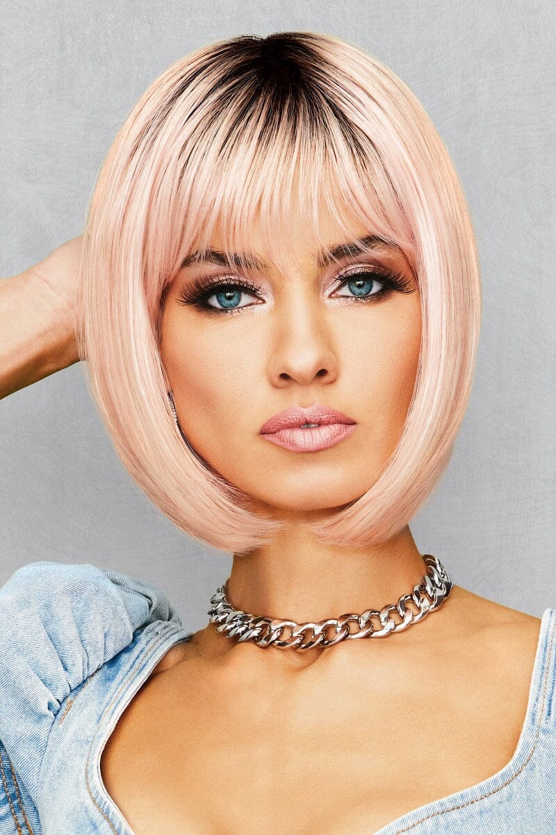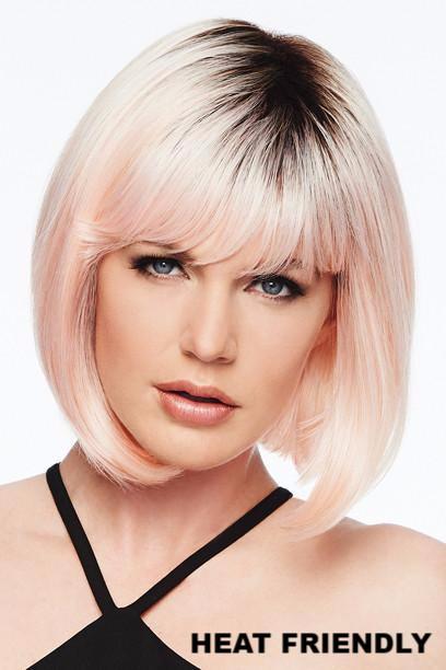 The perfect shade of peachy pink can now be yours without commitment. This pastel color trend is paired with a bob cut, making it classic yet edgy. The multi-faceted color has a darker root to add contrast and a natural look. Have your hairstylist customize the bang and style the Tru2Life® heat-friendly synthetic hair with a curling iron or flat iron. The cap is made to be light and as cool as you.