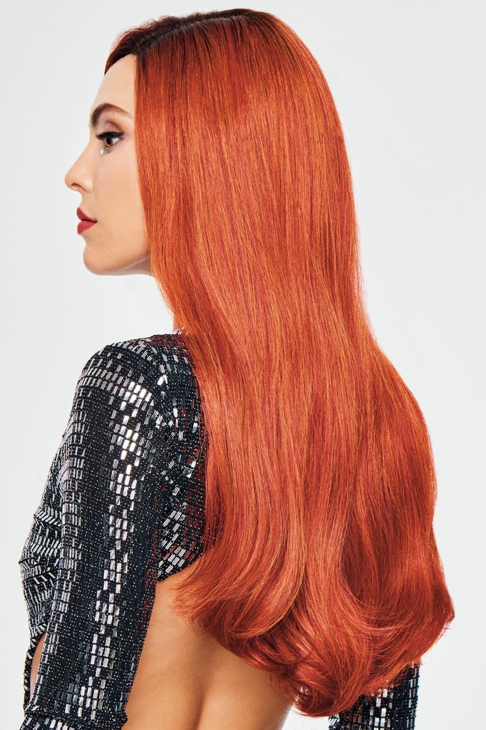 Mane Flame from Hairdo has bold and spicy-hot long, loose waves in a scroll-stopping shade of rooted red-orange. They’ll love your new look and you’ll love that it comes with no strings, no damage, no commitment. Vivid and red-hot without regular touch ups? Sign me up!